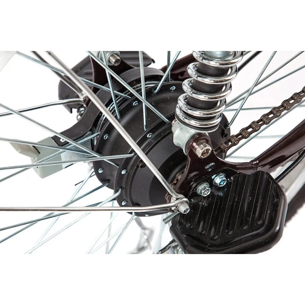 Из технических характеристик и особенностей производитель выделяет такие. Мощность двигателя составляет 500 Вт. При максимальной скорости 25-30 км/час электровелосипед на одной подзарядке способен преодолеть расстояние до 60 км. 24-дюймовые колеса созданы для езды по разному виду местности. Наличие вместительной корзины удобно при ведении домашнего хозяйства и отдыхе на природе. Велогибрид относится к заднеприводной категории техники.